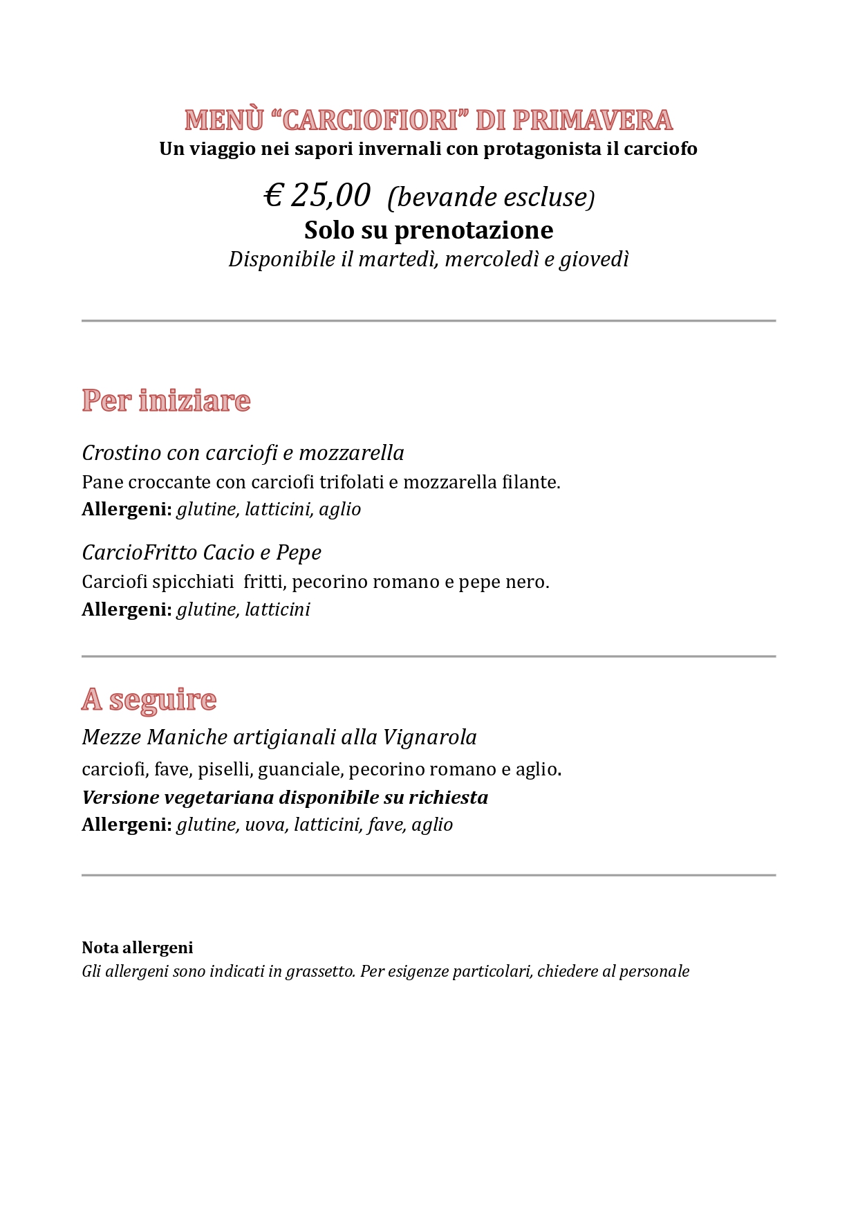Per gli allergeni fare riferimento al menù alla carta.