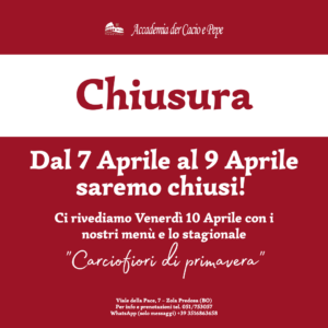 In caso di intolleranze, allergie o esigenze particolari è possibile chiedere variazione dell’intero menù